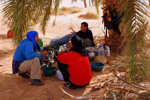 There were wonderful smells coming from that tent, but he was also often squatting outside the tent on a fire, stirring a large pan of Moroccan soup or making a tagine or couscous. We also drank water or herbal tea. You didn't get alcohol and there wasn't any! And to be honest, I didn't miss that either.